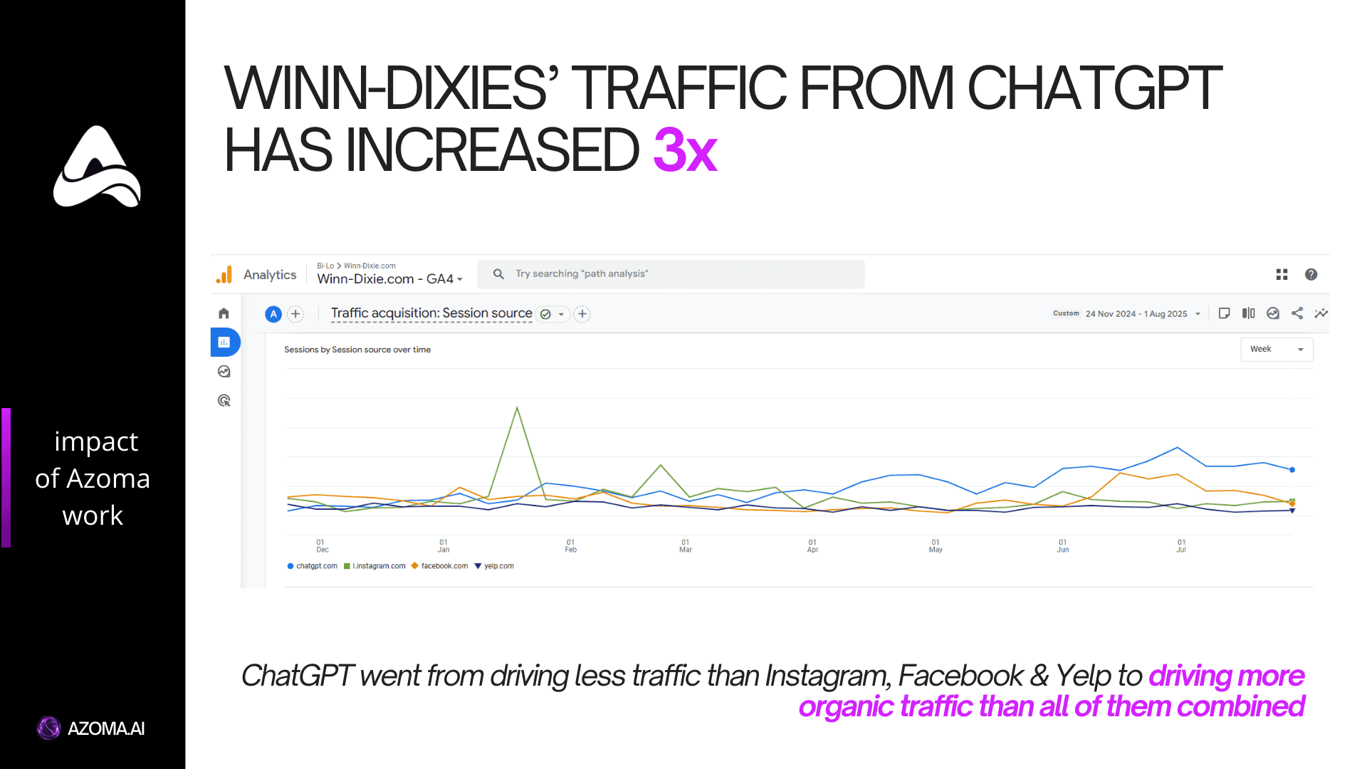 Azoma deployed their patented Generative Engine Optimization (GEO) technology to transform Winn-Dixie's AI presence: