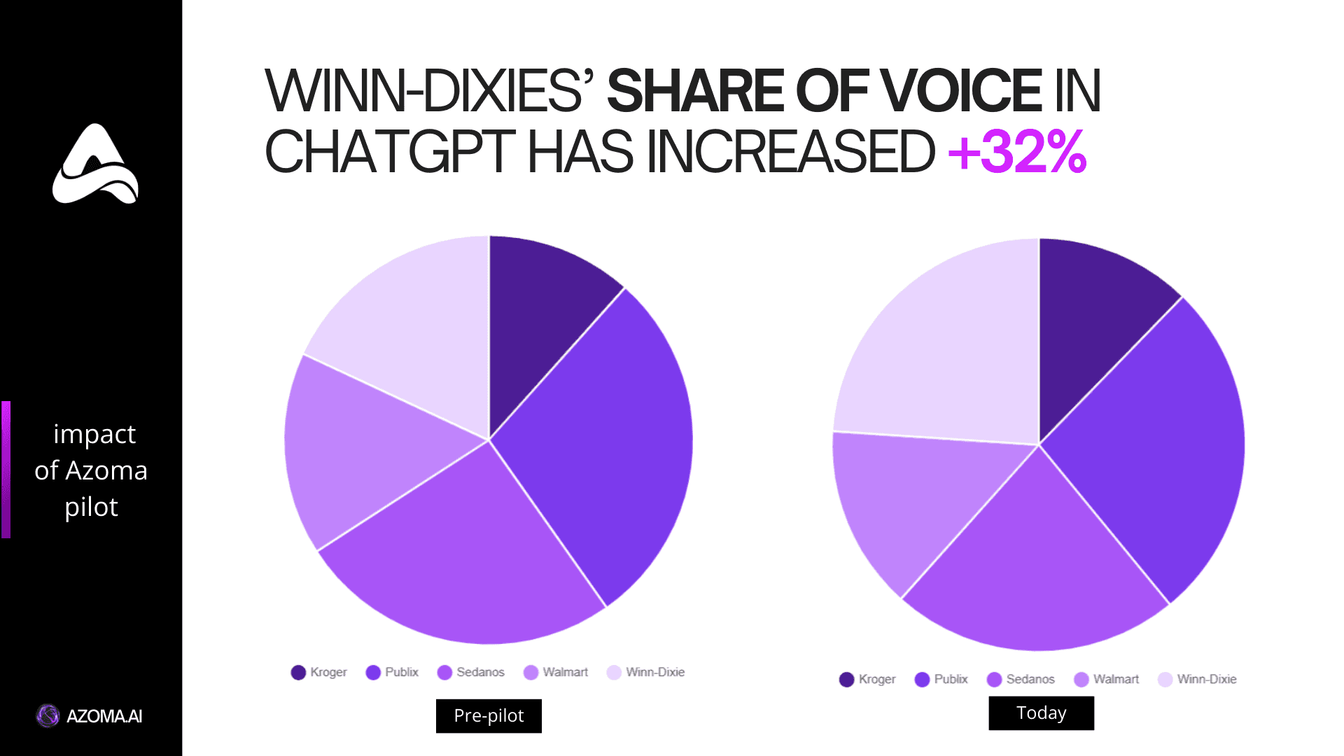 When AI platforms recommended grocery stores, Winn-Dixie's share of mentions increased by 32%, taking market share directly from competitors like Publix and Kroger.