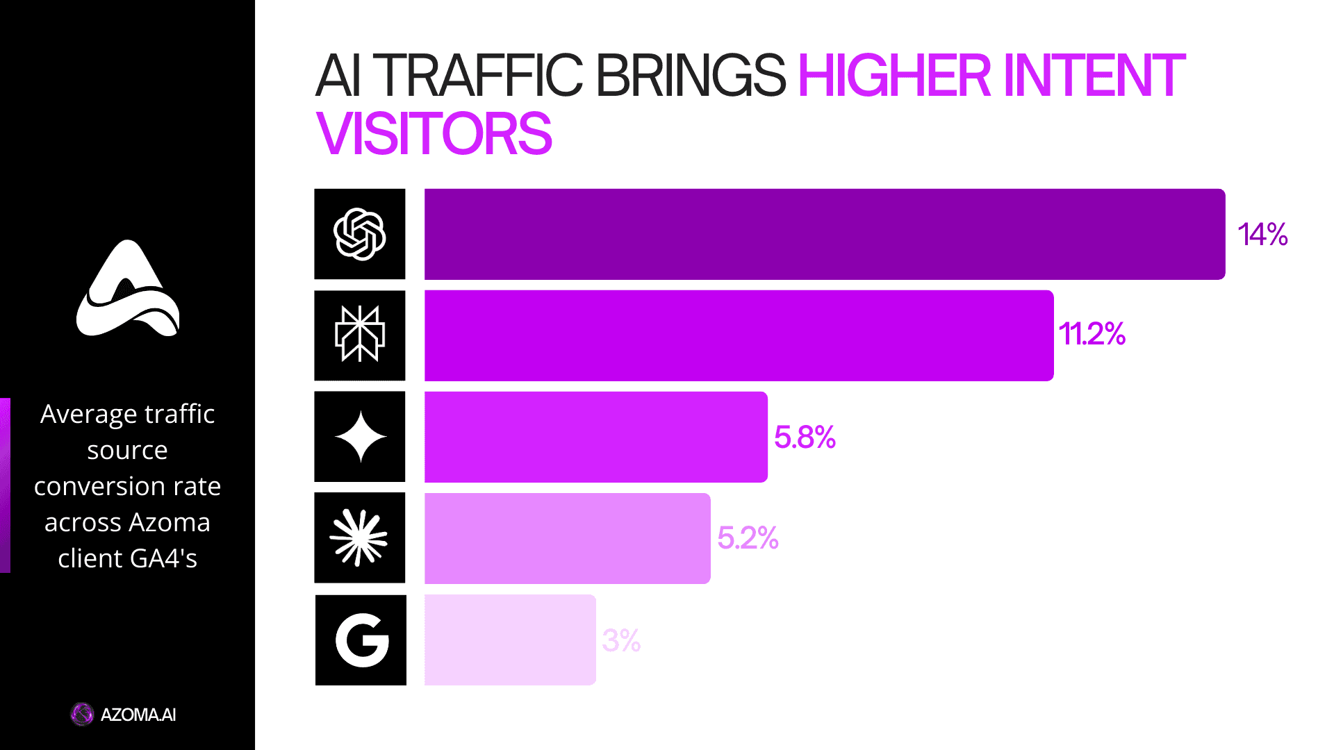 Visitors from AI platforms showed purchase intent 5 times higher than traditional search traffic, validating the quality of AI-driven discovery.