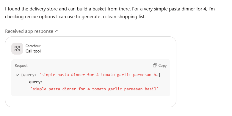 The Carrefour integration is notable for being first in Europe. MCP is the same protocol that underpins how AI agents connect to external data sources across systems. Carrefour backed Google's equivalent Universal Commerce Protocol standard in early 2026, which is designed to enable the same interoperability across Google's AI-powered shopping environments. Interestingly, OpenAI's Agentic Commerce Protocol is not used by the Carrefour app - instead a shopping cart module is provided, which can be sent to Carrefour.fr to purchase on their site.