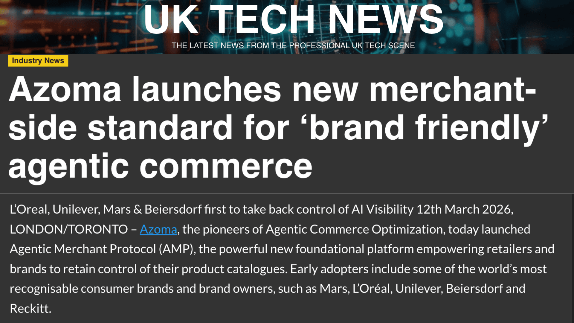 Read about the latest Azoma news including fundraising, partnerships, thought leadership & more.